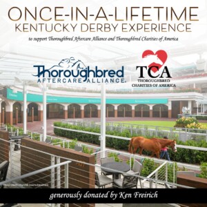 LEXINGTON, Ky. – To help raise awareness and funds for Thoroughbred aftercare, Ken Freirich, racehorse owner and philanthropist, has generously donated an exclusive Kentucky Derby and Oaks Package to Thoroughbred Charities of America (TCA) and the Thoroughbred Aftercare Alliance (TAA). The package is being offered via an online auction through Friday, April 17 at 5 p.m. EST. Bidding is open and available here. The proceeds will be split evenly between the two non-profit organizations.