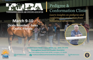LEXINGTON, Ky. — The Thoroughbred Owners and Breeders Association (TOBA) is pleased to announce the full schedule and the opening of registration for its 2026 Spring Pedigree & Conformation Clinic, sponsored by the Florida Thoroughbred Breeders’ and Owners’ Association, taking place March 9–10, 2026, at Ocala Breeders’ Sales (OBS) in Ocala, Florida.